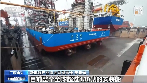新能源產業(yè)協(xié)會副理事長 于晨光:海上風電安裝船作為整個海上風電安裝效率提升就是最重要的一個船機。目前整個全球超過130艘的安裝船,中國造超過100艘,也就占了這80%以上的這個份額。目前高性能的安裝船需求訂單已經排到2028年,所以其實中國的這個安裝船的市場可以走向歐美。