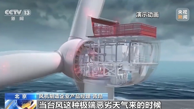 風機制造企業(yè)產品經理 胥昂:我們主要應用北斗以及5G,來實現風機最大化利用風資源,來實現發(fā)電量的提升;當臺風這種極端惡劣天氣來的時候,通過北斗衛(wèi)星的一個信號傳遞,來實時控制風機的方向以及姿態(tài),能夠安全、有效度過整個臺風的考驗。