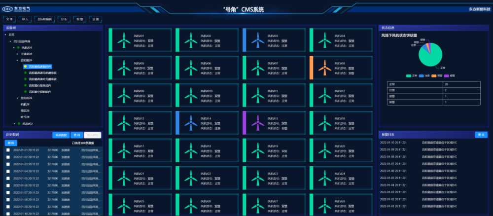 “號角”CMS系統(tǒng)是東方新能科技與東方研究院聯(lián)合攻關(guān),基于萬余臺風(fēng)電機組的運行數(shù)據(jù)和運維經(jīng)驗,針對風(fēng)電機組狀態(tài)監(jiān)測系統(tǒng)開發(fā)。該系統(tǒng)集成了數(shù)據(jù)管理、智能診斷、多維度統(tǒng)計預(yù)警、機器學(xué)習(xí)、專家服務(wù)等先進(jìn)算法和手段,具有硬件通用化、數(shù)據(jù)開放化、分析標(biāo)準(zhǔn)化等特點,能夠與風(fēng)電機組主控系統(tǒng)直接通訊,實現(xiàn)實時監(jiān)測、自動診斷和保護停機等功能。“號角”CMS系統(tǒng)與“哨塔”輕量化預(yù)警平臺、“新能智維”信息化系統(tǒng)一起,構(gòu)成東方新能科技智慧運維體系。