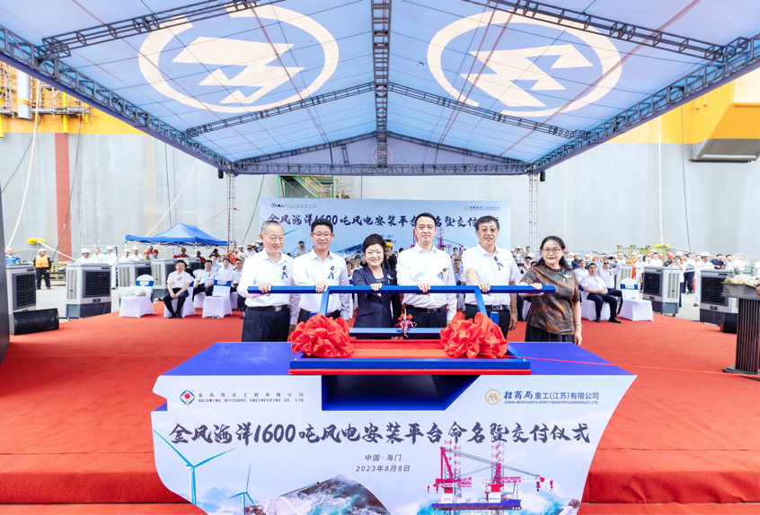 南通市委副書記、代市長張彤,陽江市委副書記、市長余金富,招商局工業(yè)集團黨委副書記、副總經(jīng)理吳四川,金風科技集團董事長武鋼,中天科技集團董事長薛濟萍,三峽集團、國家電投集團、中廣核新能源公司等企業(yè)代表出席交付儀式。