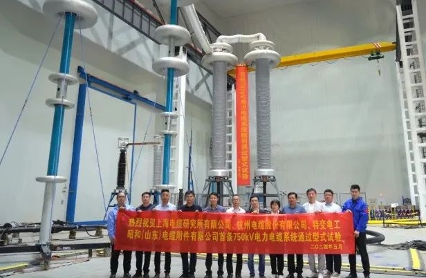 近日,由上海電纜研究所有限公司牽頭,聯(lián)合杭州電纜股份有限公司、特變電工昭和(山東)電纜附件有限公司等共同設(shè)計(jì)研發(fā)的750kV交聯(lián)聚乙烯絕緣電纜系統(tǒng),在國家電線電纜質(zhì)量檢驗(yàn)檢測中心(TICW)完成并順利通過型式試驗(yàn)。電纜系統(tǒng)電氣試驗(yàn)回路由1600mm²電纜本體和復(fù)合套式戶外終端組成。