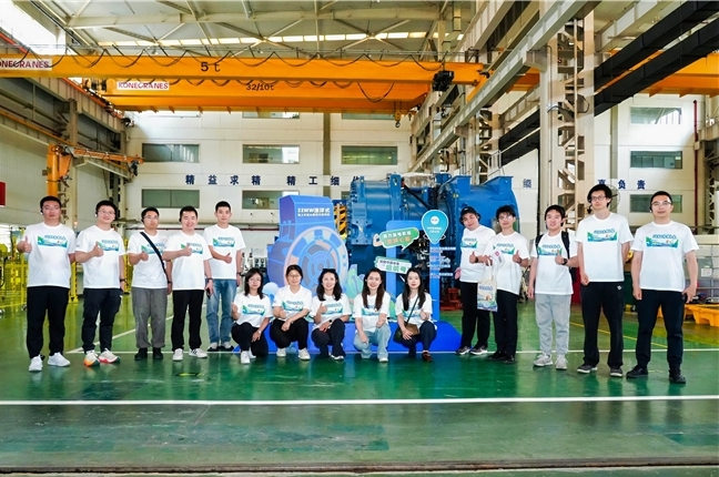 活動中,風車迷們體驗了沉浸式“工業(yè)旅游”,參觀了中國中車旗下中車株洲所、中車株洲電機、中車時代新材三家公司,與超大功率漂浮式海上風力發(fā)電機機組、風力發(fā)電機組“澎湃動力心臟”、160米葉片全尺寸結構試驗室等新能源大國重器近距離接觸;參加了在鹽城師范學院舉辦的第七屆“中國中車杯”全國大學生可再生能源優(yōu)秀科技作品競賽開幕式,觀摩了大學生優(yōu)秀競賽作品;聆聽了中車技術專家們的知識科普,現(xiàn)場技術講解、科普視頻和問答互動等活動,讓風車迷們全面了解了風電機組、葉片和風力發(fā)電機等產品相關知識。