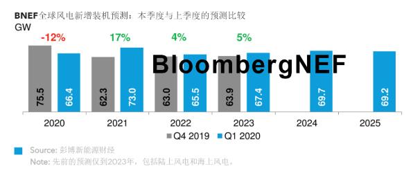12%-疫情沖擊風(fēng)電行業(yè)后,BNEF風(fēng)電新增吊裝容量預(yù)測(cè)較上一季度的下調(diào)幅度
