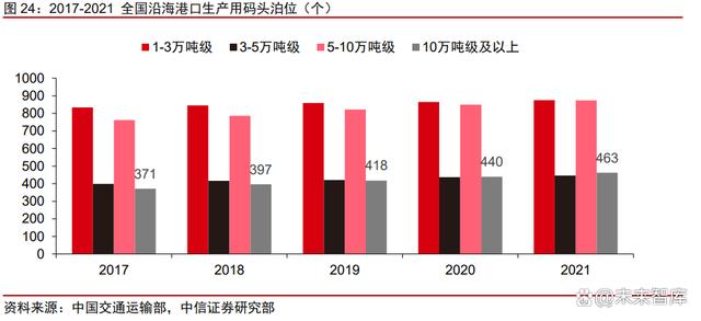 碼頭資源稀缺,港口岸線審批難度大。碼頭建設(shè)需通過省政府審批滿足規(guī)劃,港口岸 線使用權(quán)需要通過國家交通運(yùn)輸部批復(fù),碼頭岸線的資源審批難度持續(xù)加大,同時(shí)港口建 設(shè)需要自然條件良好的岸線資源,對周邊配套資源也有較高的要求。據(jù)中國交通運(yùn)輸部披 露的數(shù)據(jù),截至 2021 年底,我國萬噸級及以上泊位數(shù)量共計(jì) 2659 個(gè),風(fēng)電塔筒管樁運(yùn)輸 所需的 10 萬噸級及以上泊位數(shù)量共計(jì) 463 個(gè),占萬噸級及以上泊位數(shù)量的 17%,年新增 數(shù)僅 23 個(gè)。因此已獲審批的港口碼頭等生產(chǎn)基地逐步成為稀缺資源,掌握相關(guān)資源的廠 商先發(fā)優(yōu)勢顯著。