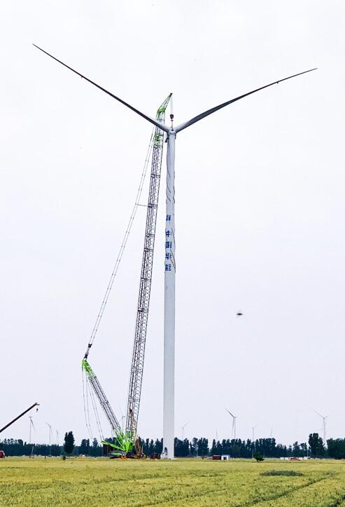 5月24日下午,隨著河南濮陽風(fēng)電場(chǎng)3號(hào)風(fēng)機(jī)葉輪組件吊裝就位,標(biāo)志著由中國能建浙江火電承擔(dān)安裝的濮陽500兆瓦風(fēng)電工程?hào)|北片區(qū)和西北片區(qū)共66臺(tái)風(fēng)機(jī)全部吊裝完成。