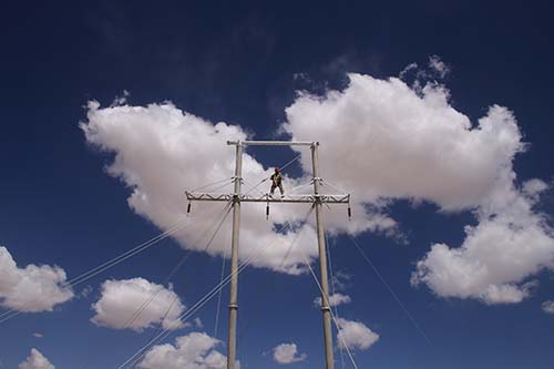 項(xiàng)目架空線路桿塔共計(jì)668基,12種桿塔型式。桿塔是在35kV架空線路架設(shè),線路總長度約122.21km,塔高為15-21米,屬于高空作業(yè)。施工現(xiàn)場(chǎng)干旱炎熱,沙塵暴和冰雹也常常輪番“光顧”,給施工進(jìn)度和安全管理帶來不小的挑戰(zhàn)。在桿塔組立作業(yè)前,項(xiàng)目部組織協(xié)作隊(duì)伍召開專題安全會(huì),施工隊(duì)長徐少帥堅(jiān)持對(duì)現(xiàn)場(chǎng)的施工操作人員進(jìn)行詳細(xì)的安全、技術(shù)、質(zhì)量交底工作;質(zhì)量安全科林周彬堅(jiān)持每天現(xiàn)場(chǎng)巡查,要求高空作業(yè)人員必須持證上崗,且具有合格的體檢報(bào)告;施工過程中,施工現(xiàn)場(chǎng)拉起安全警戒線、懸掛安全警示標(biāo)識(shí),安全員全程旁站監(jiān)督,確?,F(xiàn)場(chǎng)施工安全質(zhì)量可控。