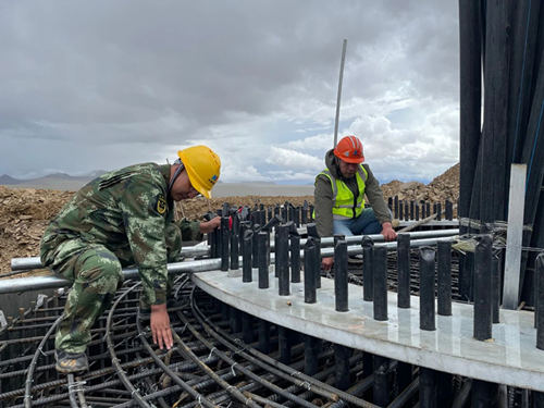 在海拔5000米的西藏高原,多陣風、高風速,人員降效嚴重,項目部全體人員充分發(fā)揚“缺氧不缺精神、艱苦不怕吃苦”的老西藏精神,務實篤行,克服場區(qū)海拔高、氣壓低、日照強、雷暴多發(fā)、空氣密度極低、溫差幅度大、人員高原反應強烈等不利因素,從施工技術方案、施工組織設計、管理措施、關鍵工序、標準化施工工藝等方面綜合考慮,超前策劃、周密部署、精心組織、科學決策、精心施工,歷經1個月攻堅克難,如期圓滿完成4臺風機基礎澆筑,為工程后續(xù)施工的順利推進打下了堅實基礎。