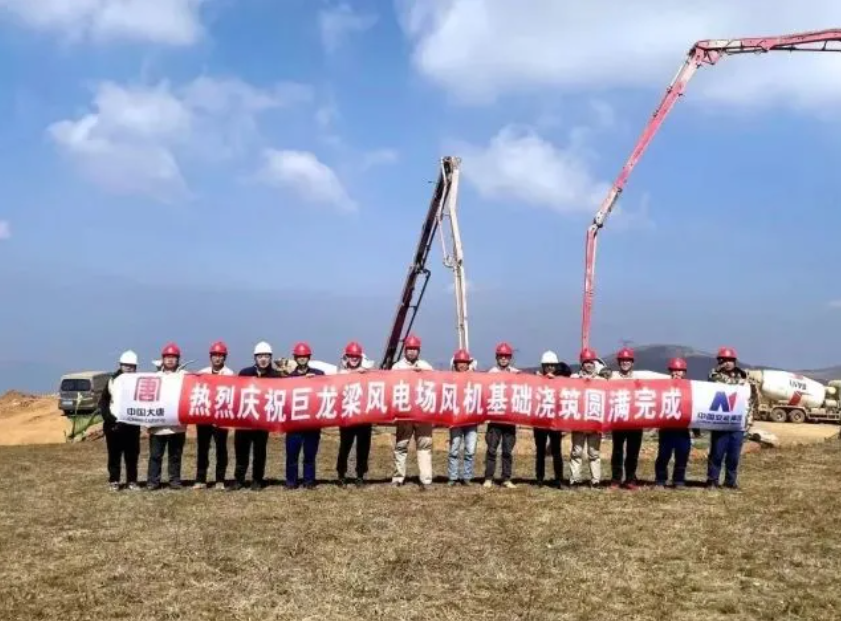 項目部全體員工緊盯生產(chǎn)目標,上下一心、勠力同行, 2022年10月8日,巨龍梁風(fēng)電項目首臺風(fēng)機基礎(chǔ)澆筑完成。12月20日,首臺國內(nèi)單機容量最大的6.7兆瓦高原山地風(fēng)機吊裝完成。12月31日,首臺風(fēng)機正式并網(wǎng)發(fā)電。2023年3月19日,該項目15臺風(fēng)機基礎(chǔ)全部澆筑完成,為沖刺全容量并網(wǎng)發(fā)電做好了堅實保障。