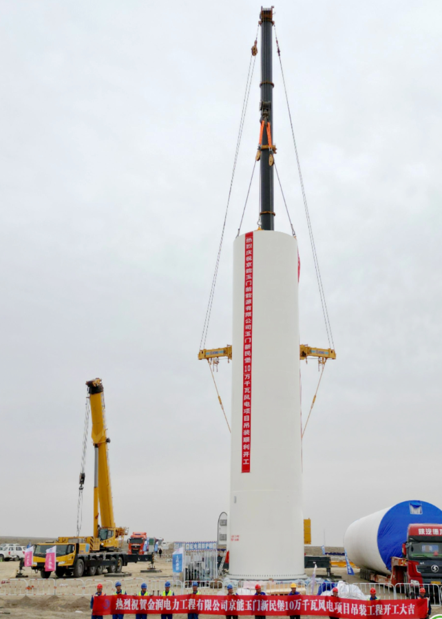 金潤電力京能玉門新民堡10萬千瓦風電吊裝工程順利開工
