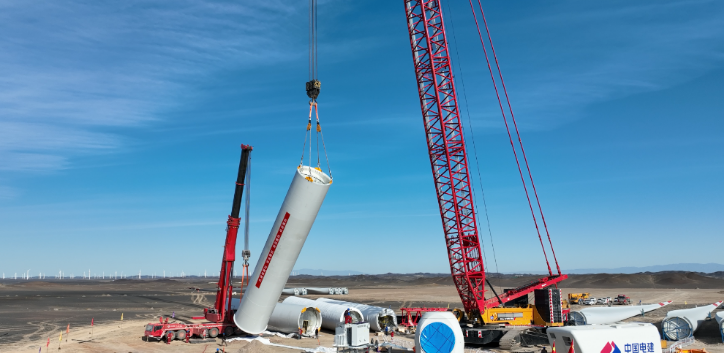 10月3日,由水電十一局牽頭總包承建的電建集團(tuán)投資建設(shè)的陸上最大風(fēng)電項(xiàng)目——新疆巴里坤60萬(wàn)千瓦風(fēng)儲(chǔ)項(xiàng)目首臺(tái)風(fēng)機(jī)塔筒成功開始吊裝。