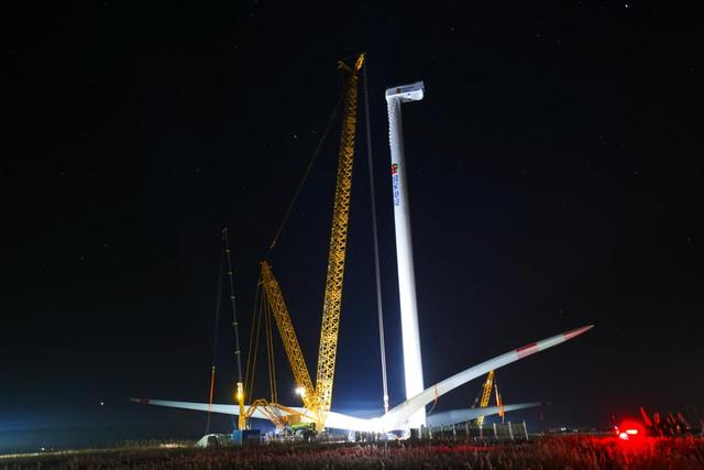 吉林大安風(fēng)電項目位于吉林省白城市大安市,建設(shè)規(guī)模200兆瓦,主要施工內(nèi)容包括40臺風(fēng)電機(jī)組基礎(chǔ)及安裝工程、40臺箱式變壓器、8條集電線路及附屬道路,合計200兆瓦總?cè)萘?。本次安裝的風(fēng)機(jī)設(shè)計輪轂中心高度110米,葉輪直徑193米,最大掃風(fēng)面積29240平方米,相當(dāng)于4個足球場大小。超強(qiáng)的掃風(fēng)面積帶來的是加倍的陸上捕風(fēng)能力,單臺機(jī)組年發(fā)電量可滿足8000戶家庭全年用電量。
