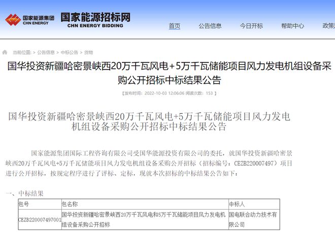 近日,國華投資新疆哈密景峽西20萬千瓦風(fēng)電+5萬千瓦儲能項目風(fēng)力發(fā)電機組設(shè)備采購公開招標(biāo)中標(biāo)結(jié)果公告,國電聯(lián)合動力中標(biāo),中標(biāo)價43580萬元,折合單價2179元/kW。