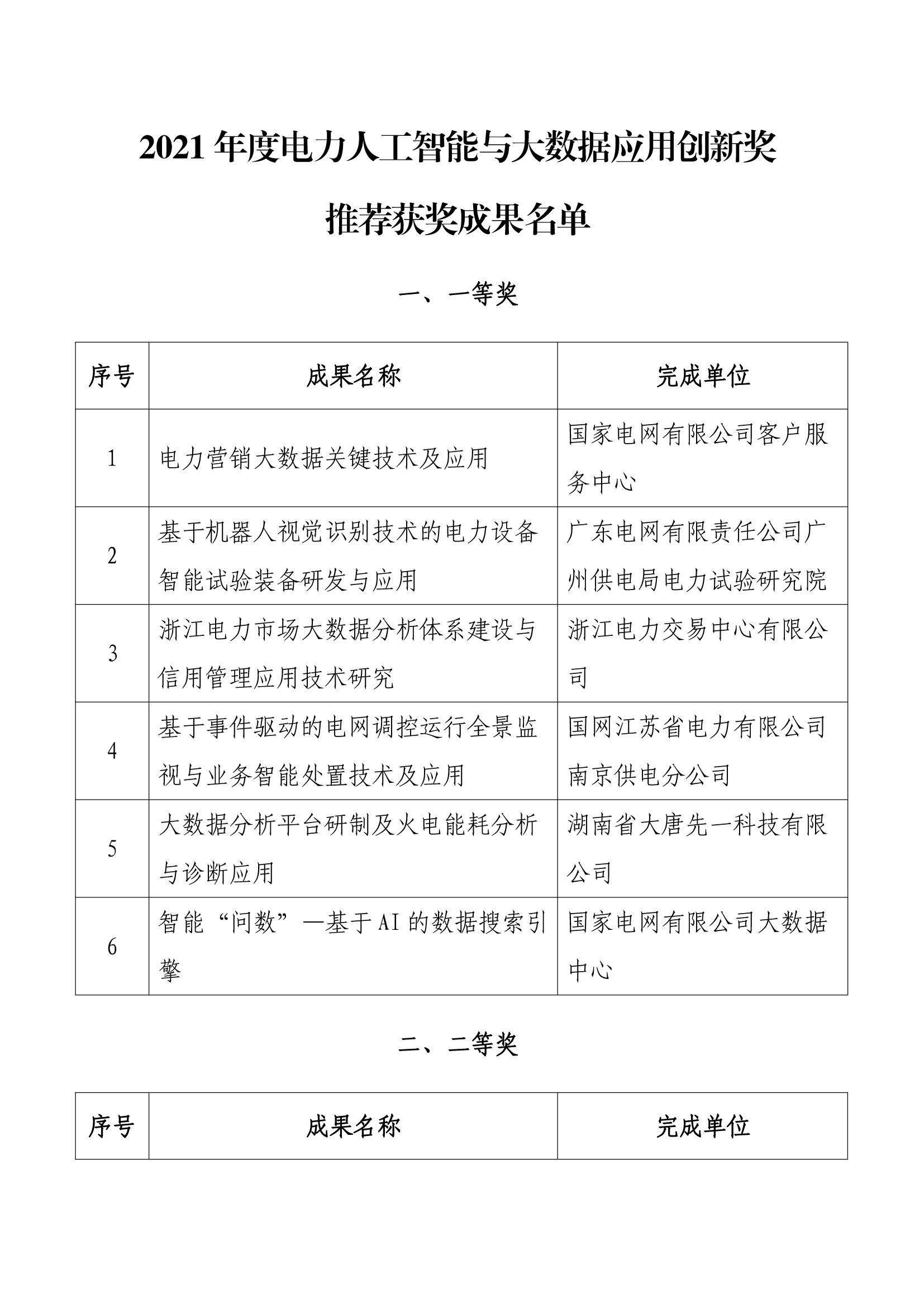 附件:2021年度電力人工智能與大數(shù)據(jù)創(chuàng)新應(yīng)用成果獎(jiǎng)獲獎(jiǎng)名單