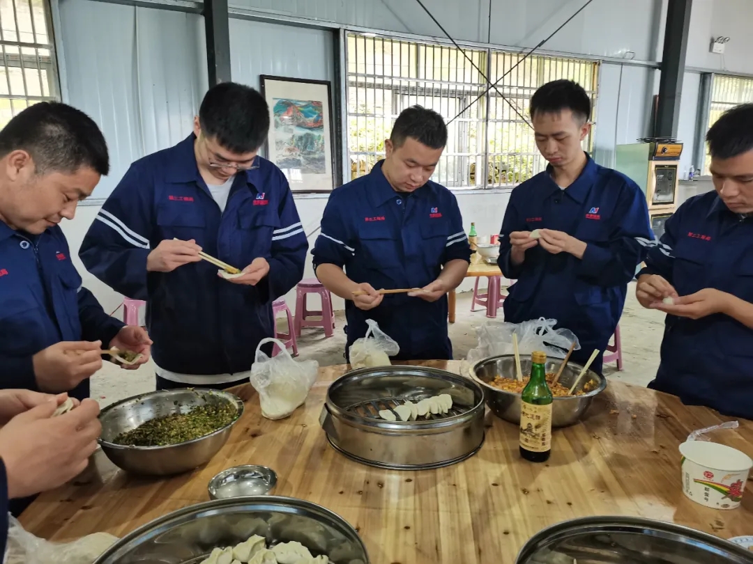 提到“端午節(jié)”,最不能缺少的一定是“粽子”。端午節(jié)這天,硬梁包項項目部、重慶公司工程四隊、龍溪河項目、那曲項目、桐城項目部等基層單位的食堂內(nèi),員工和來隊家屬“自己動手,豐衣足食”,來到食堂自發(fā)參與,自己親手包的粽子。有的負(fù)責(zé)剪粽葉,有的負(fù)責(zé)包,有的負(fù)責(zé)綁繩子,將準(zhǔn)備好的粽葉、糯米、臘肉和豌豆等材料也一個個綁好放上蒸籠,大家邊包粽子邊拉著家常,現(xiàn)場其樂融融。許多員工都表示這是他們第一次在項目上包粽子,過佳節(jié),感受節(jié)日氛圍、弘揚傳統(tǒng)文化的同時,也增進(jìn)了彼此間的感情交流,既體驗到家的溫暖,也增強了歸屬感。