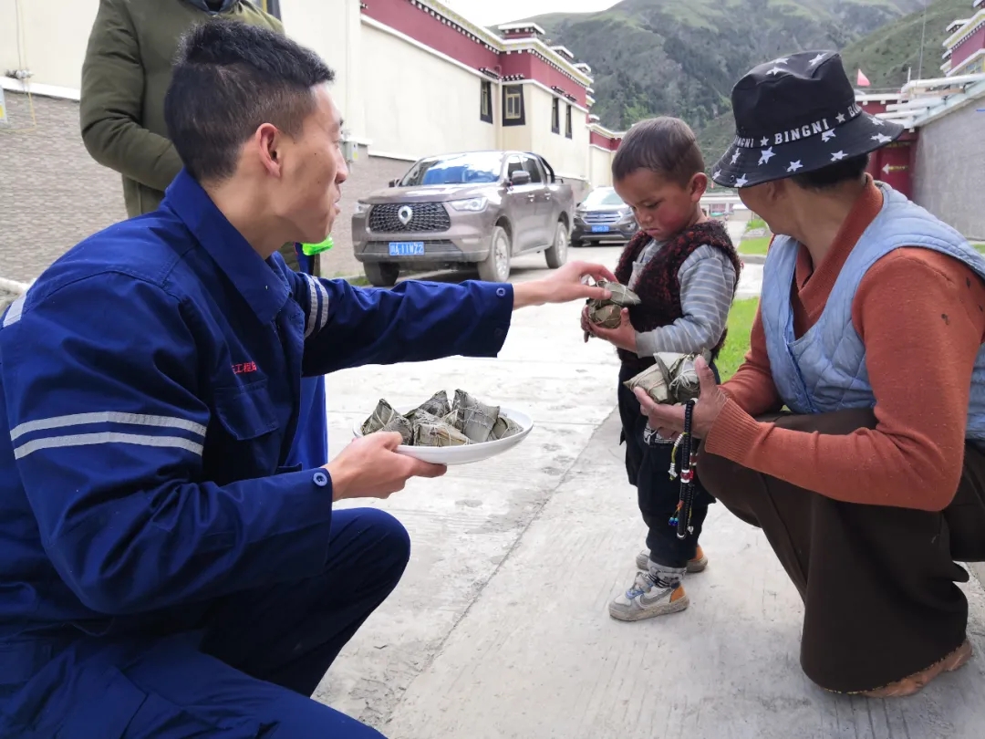 端午節(jié)恰遇蟲草季,青年人都已上山挖蟲草,那曲JD項目部堅持把黨史學(xué)習(xí)教育與我為群眾辦實事結(jié)合起來,為駐地留守老人、兒童送關(guān)懷,送上暖心“粽”,收到粽子的老人笑著說:“感謝中國安能,突及其(謝謝)!”