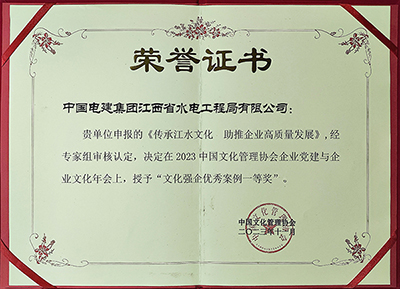 中國(guó)電力網(wǎng)訊 (通訊員 趙勇) 日前,2023中國(guó)文化管理協(xié)會(huì)企業(yè)黨建與企業(yè)文化年會(huì)在杭州舉辦。中國(guó)電建集團(tuán)江西省水電工程局有限公司(以下簡(jiǎn)稱(chēng)“江西水電”)申報(bào)的《傳承江水文化 助推企業(yè)高質(zhì)量發(fā)展》案例獲評(píng)中國(guó)文化管理協(xié)會(huì)“文化強(qiáng)企優(yōu)秀案例一等獎(jiǎng)”,申報(bào)的《企業(yè)文化手冊(cè)》獲評(píng)“最美品牌之聲”銀獎(jiǎng)代言作品。這是繼獲評(píng)全國(guó)工程建設(shè)行業(yè)企業(yè)文化最佳案例之后,又一次獲獎(jiǎng)。