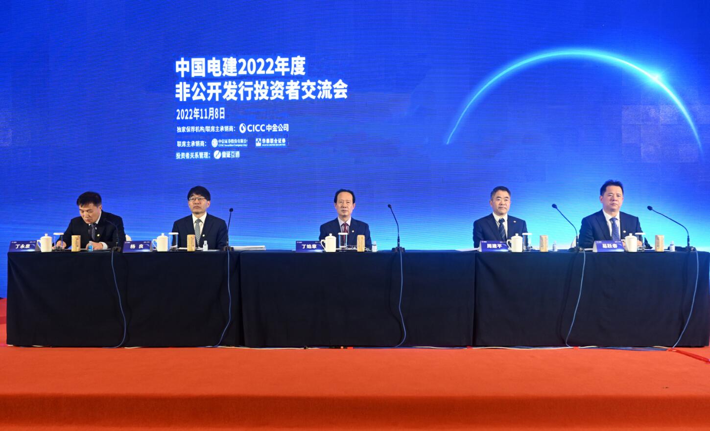 本網訊 11月8日,中國電建在京召開2022年度非公開發(fā)行投資者見面會。公司黨委書記、董事長丁焰章出席會議并作主題演講,對本次非公開發(fā)行方案進行了系統(tǒng)推介。公司總會計師楊良參與投資者交流。