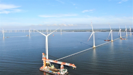 風(fēng)從海上來(lái),吹來(lái)源源不斷的綠色能源。由中國(guó)電建承建的中企境外首個(gè)海上風(fēng)電EPC工程——薄寮三期、朔莊一期海上風(fēng)電項(xiàng)目,57臺(tái)國(guó)產(chǎn)“大風(fēng)車”,在92平方公里的海域內(nèi)勻速旋轉(zhuǎn),年上網(wǎng)電量約4.9億千瓦時(shí),可滿足當(dāng)?shù)?5萬(wàn)居民的平均年用電需求。