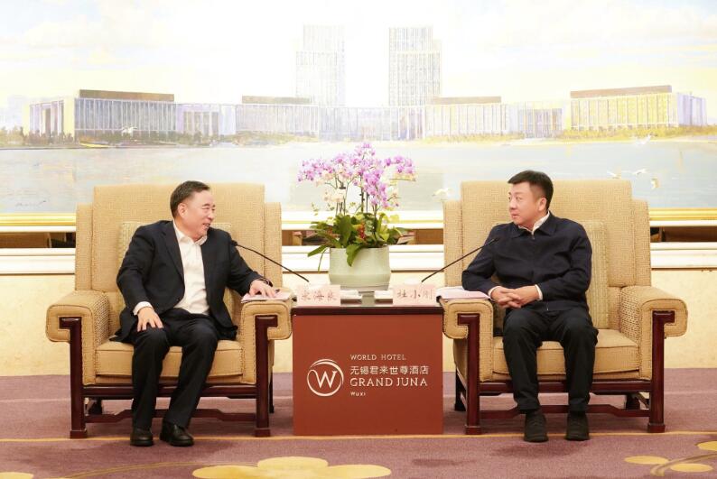 杜小剛對宋海良一行到訪表示歡迎,對中國能建為無錫發(fā)展作出的貢獻表示感謝,并簡要介紹了無錫市經(jīng)濟社會發(fā)展情況。他說,當前,無錫正全面落實習近平總書記視察江蘇重要講話指示精神,大力推進能源綠色低碳轉型、資本金融產業(yè)和基礎設施建設,加快打造新時代工商名城,爭當踐行新發(fā)展理念高質量發(fā)展示范區(qū)和中國式現(xiàn)代化建設的城市范例,呈現(xiàn)出良好的發(fā)展態(tài)勢。他表示,中國能建是我國能源電力、基礎設施建設國家隊、主力軍,企業(yè)業(yè)務布局與無錫市未來發(fā)展戰(zhàn)略高度契合,雙方合作空間廣闊,希望中國能建持續(xù)關注無錫、加碼無錫,聚焦新興產業(yè)、未來產業(yè)等方向,發(fā)揮企業(yè)經(jīng)營優(yōu)勢、科技優(yōu)勢、資源優(yōu)勢,導入更多城市建設、生態(tài)治理、軌道交通、市政配套等資源,合力搶占新能源產業(yè)新賽道,助力無錫奮力在國家“強起來”的歷史進程中烙下鮮明印記。無錫將提供最優(yōu)質服務、營造最優(yōu)良環(huán)境,與中國能建并肩扛起新使命、攜手譜寫新篇章,樹立新時代央地合作新典范,合力為高質量發(fā)展大局作出更大貢獻。