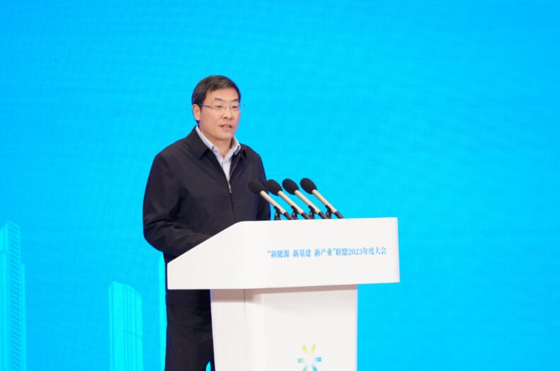 馬欣對(duì)大會(huì)的召開(kāi)表示祝賀。他表示,實(shí)現(xiàn)碳達(dá)峰、碳中和,是以習(xí)近平同志為核心的黨中央經(jīng)過(guò)深思熟慮作出的重大戰(zhàn)略決策,事關(guān)中華民族永續(xù)發(fā)展和構(gòu)建人類命運(yùn)共同體。近年來(lái),江蘇省積極布局新能源產(chǎn)業(yè),在無(wú)錫等地率先啟動(dòng)“城鄉(xiāng)建設(shè)碳達(dá)峰碳中和先導(dǎo)區(qū)”建設(shè),積極探索綠色低碳發(fā)展的技術(shù)路徑、政策措施、管理機(jī)制。他表示,由中國(guó)能建牽頭成立的“三新”聯(lián)盟,有效聚合了綠色低碳行業(yè)的龍頭企業(yè)、高校、科研機(jī)構(gòu)及相關(guān)機(jī)構(gòu),通過(guò)一年來(lái)的良好運(yùn)作與實(shí)踐積累,為國(guó)家、地方和各行業(yè)綠色低碳轉(zhuǎn)型作出了積極貢獻(xiàn)。希望政企雙方全方位深化新能源產(chǎn)業(yè)合作、加速推動(dòng)產(chǎn)業(yè)鏈多元化建設(shè)、積極探討新型儲(chǔ)能未來(lái)發(fā)展,服務(wù)江蘇在推進(jìn)中國(guó)式現(xiàn)代化中走在前作示范、譜寫(xiě)“強(qiáng)富美高”新江蘇現(xiàn)代化建設(shè)。