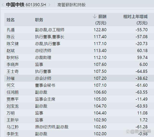 年報(bào)還披露,中鐵股份高管收入基本都超過百萬元,最高是副總裁兼總工程師孔遁,122萬元,董事長和總裁薪酬117萬元,監(jiān)事會主席薪酬105萬元。并有6位高管持有20多萬股至40萬股股份。