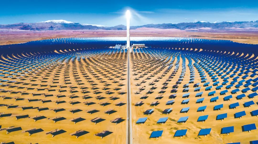 中國電建建設(shè)完成的全球裝機容量最大的塔式太陽能聚熱電站——摩洛哥努奧Ⅲ期150兆瓦光熱電站。