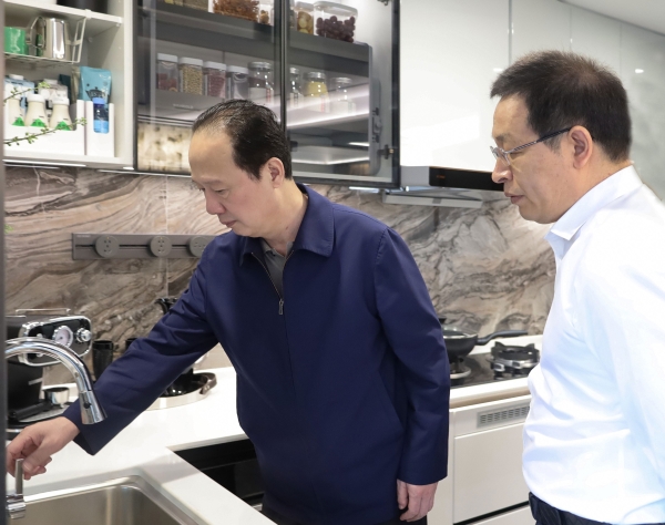 在電建地產公司所屬成都國賓華曦府項目,丁焰章實地查看售樓部、展示區(qū)及樣板間,了解項目建設和經營情況,對電建地產公司近期工作給予肯定,對國賓華曦府項目的產品呈現(xiàn)和精工細作表示認可。