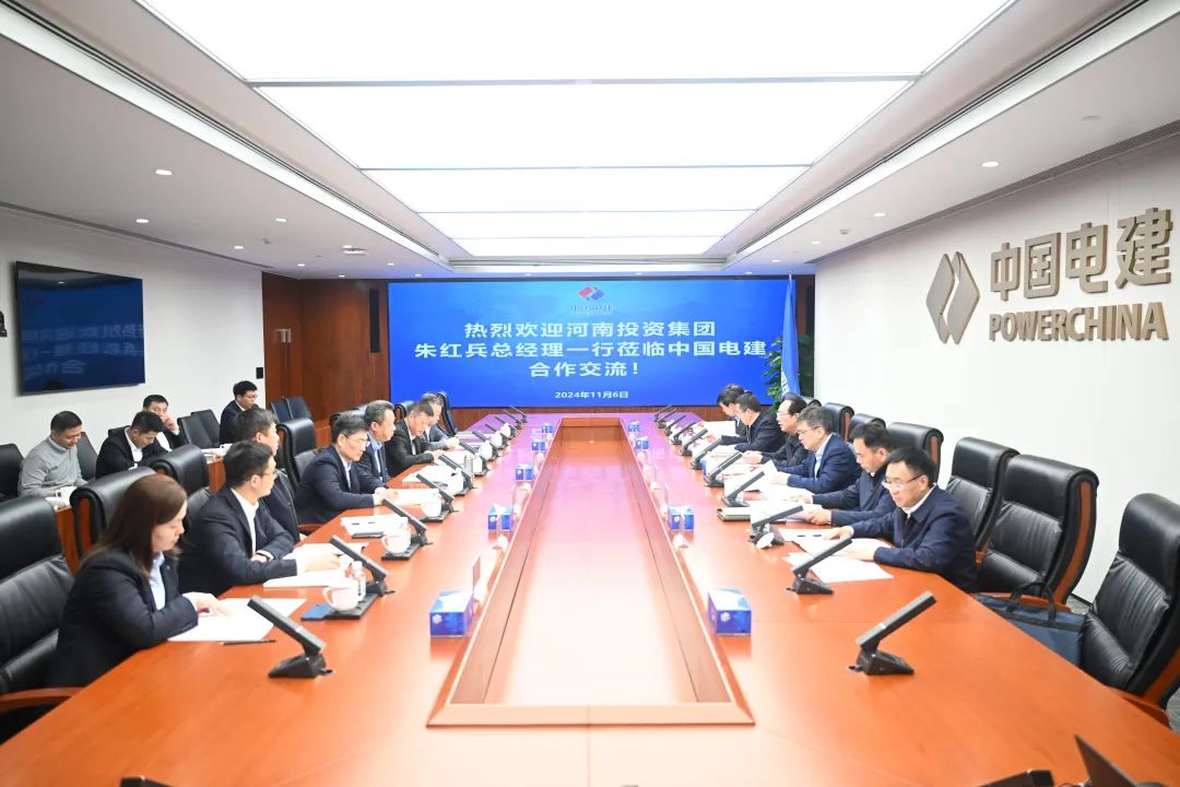 11月6日,中國(guó)電建黨委書記、董事長(zhǎng)丁焰章在總部與河南投資集團(tuán)總經(jīng)理、黨委副書記、副董事長(zhǎng)朱紅兵舉行會(huì)談,雙方就進(jìn)一步加強(qiáng)能源電力等領(lǐng)域合作進(jìn)行深入交流,并共同見證雙方戰(zhàn)略合作協(xié)議簽署。