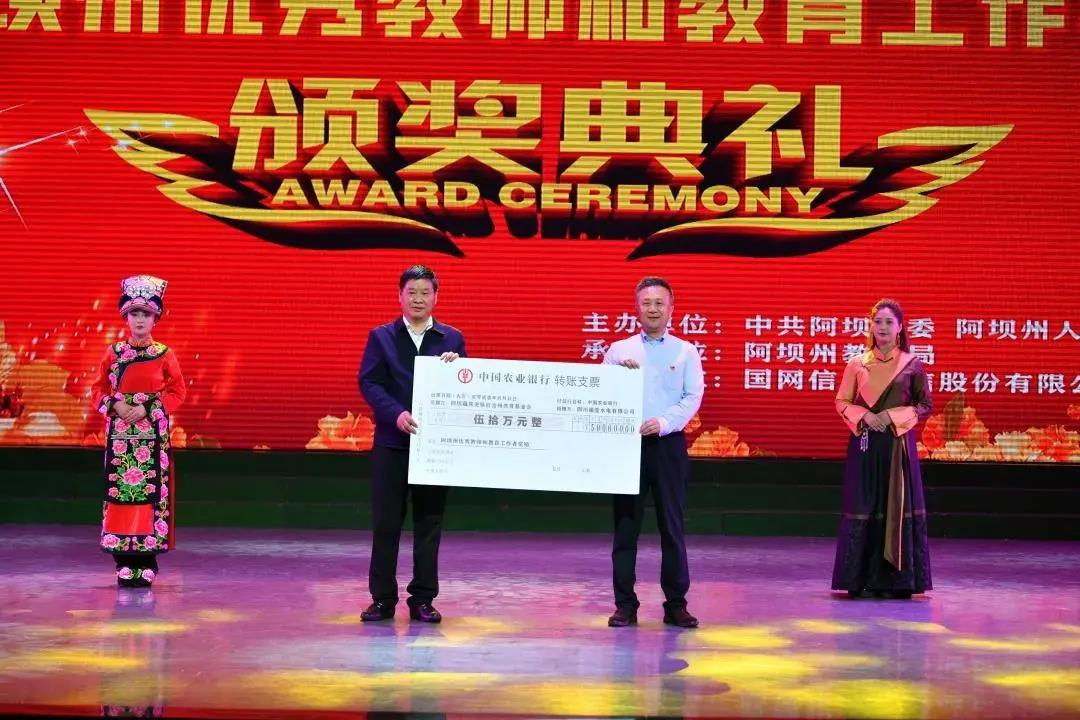國(guó)網(wǎng)信通股份作為阿壩州唯一的上市公司,一直心系阿壩州的鄉(xiāng)村振興各項(xiàng)工作。本次頒獎(jiǎng)典禮上,國(guó)網(wǎng)信通股份聯(lián)營(yíng)的四川福堂水電有限公司向阿壩州教育基金會(huì)捐贈(zèng)教師獎(jiǎng)勵(lì)基金資助50萬元,用于設(shè)立“國(guó)網(wǎng)信通·福堂教師獎(jiǎng)”獎(jiǎng)勵(lì)基金,并在本次中表彰100名優(yōu)秀教育工作者。該基金將持續(xù)用于獎(jiǎng)勵(lì)阿壩州教育系統(tǒng)做出突出貢獻(xiàn)的優(yōu)秀教師和教育工作者,為“鄉(xiāng)村振興”和“一州兩區(qū)三家園”建設(shè)提供智力支持和人才支撐。