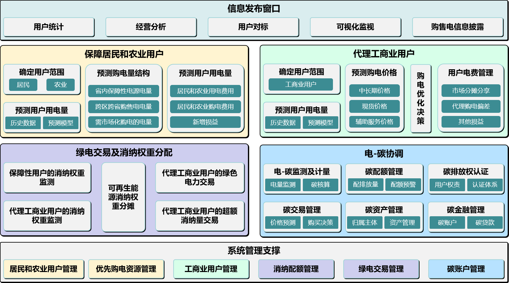 2021年11月30日,信產(chǎn)中電普華公司在能源研究會(huì)能源互聯(lián)網(wǎng)專委會(huì)上發(fā)布代理購電決策支撐工具平臺(tái)。代理購電決策支撐工具平臺(tái)的主要功能包括:保障居民與農(nóng)業(yè)用戶管理、代理工商業(yè)用戶管理、綠電交易及消納權(quán)重分配管理、電碳協(xié)調(diào)管理、信息發(fā)布窗口及系統(tǒng)管理支撐功能六大功能模塊。
