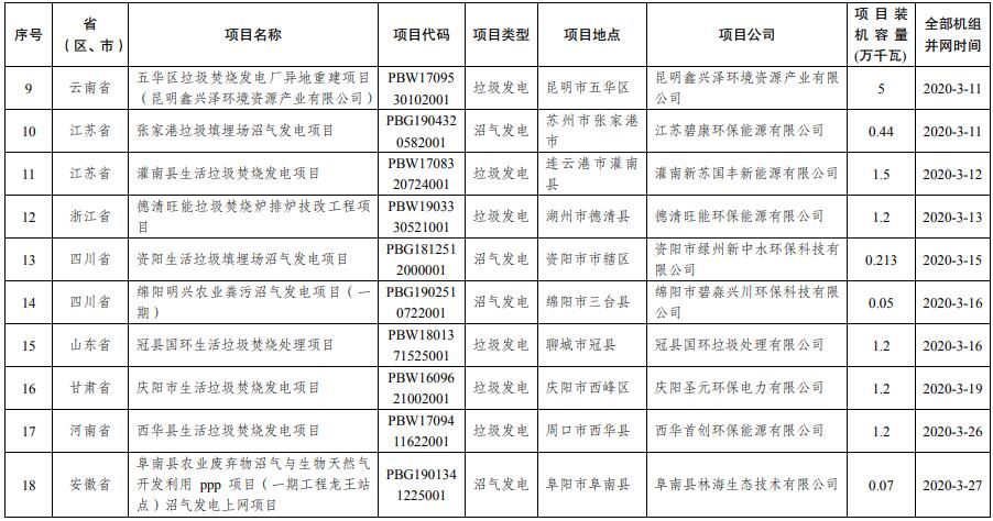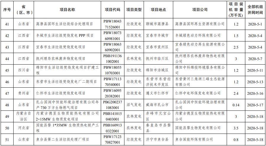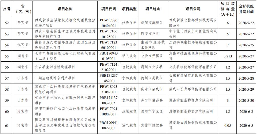關(guān)于公布2020年生物質(zhì)發(fā)電中央補貼項目申報結(jié)果的通知