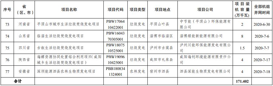 一、遵循公平、公正原則,經(jīng)委托國家可再生能源信息管理中心對各省(區(qū)、市)通過審核、公示無異議的項目進行復(fù)核、匯總排序,擬將河北、山西等20個省(區(qū)、市)的77個項目納入2020年生物質(zhì)發(fā)電中央補貼規(guī)模,總裝機容量171.4萬千瓦,納入補貼范圍的項目所需補貼總額已達到2020年中央新增補貼資金額度15億元。其中,農(nóng)林生物質(zhì)發(fā)電項目18個、裝機容量53萬千瓦,垃圾焚燒發(fā)電項目46個、裝機容量116.3萬千瓦,沼氣發(fā)電項目13個,裝機2.1萬千瓦,具體結(jié)果見附件。