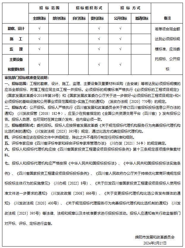 附件:綿陽市發(fā)展和改革委員會招標核準意見