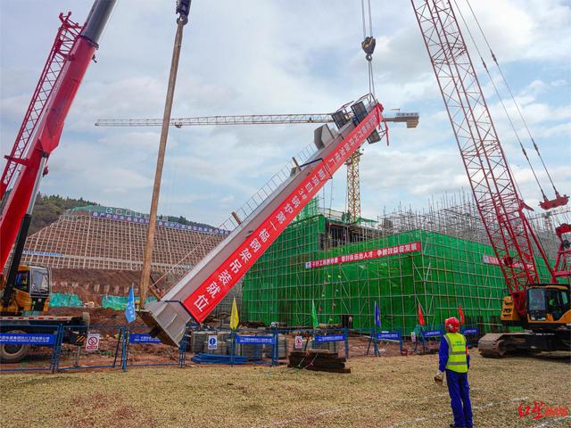 萬(wàn)興環(huán)保發(fā)電廠三期項(xiàng)目焚燒爐第一榀鋼架吊裝