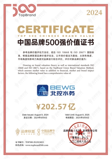 北控水務(wù)連續(xù)三年入選中國品牌500強