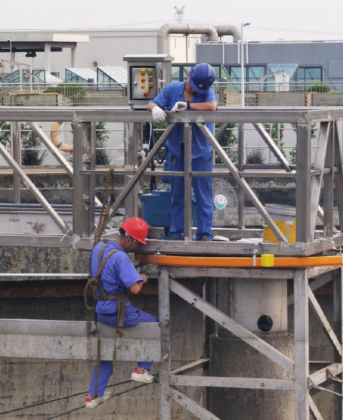 他們?cè)诟蚁氲那疤嵯拢粩嗤品粩嘀亟ǖ倪^程,最終為生化池探頭清洗找到了最優(yōu)解。在這過程中,更需要他們不怕困難。生化池內(nèi)部作業(yè)空間狹小,作業(yè)人員只能長(zhǎng)時(shí)間弓著身子操作,負(fù)責(zé)安裝的李強(qiáng)因?yàn)殚L(zhǎng)時(shí)間彎腰作業(yè),在安裝完工后腰疼在家躺了整整一天。同時(shí)他們還得克服墻面凹凸、粗糙且鋒利,稍有不慎輕則劃破衣物,重則破皮流血的風(fēng)險(xiǎn)。據(jù)說,總經(jīng)理王世雄在現(xiàn)場(chǎng)技術(shù)指導(dǎo)期間,頭上的安全帽就新增幾十處深淺不一的撞痕。