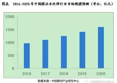 綜合多重因素預(yù)測(cè),“十三五”期間膜法水處理行業(yè)產(chǎn)值五年復(fù)合增速大概落在10-15%間,若以13%進(jìn)行計(jì)算,到2020年我國膜法水處理行業(yè)市場(chǎng)規(guī)模將達(dá)1600億元左右。