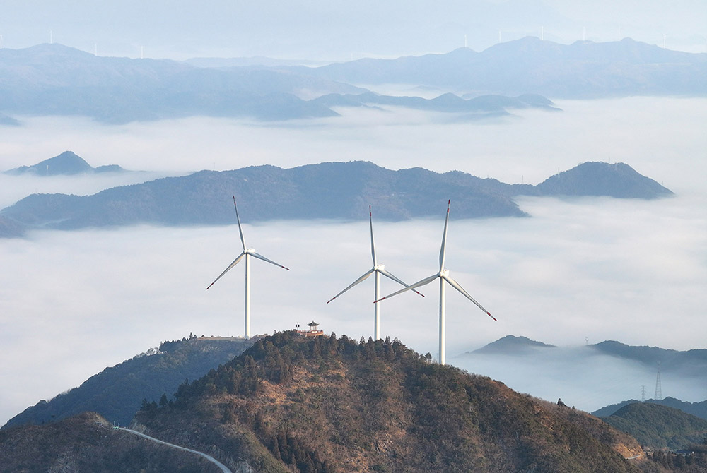 2025年3月1日,浙江省臺州市三門縣湫水山風(fēng)力發(fā)電場,風(fēng)力發(fā)電機(jī)迎風(fēng)旋轉(zhuǎn),產(chǎn)生源源不斷的綠色電能。近年來,三門縣堅(jiān)持綠色發(fā)展理念,發(fā)展高山風(fēng)能綠色能源產(chǎn)業(yè),助力低碳減排,實(shí)現(xiàn)生態(tài)環(huán)境持續(xù)發(fā)展。