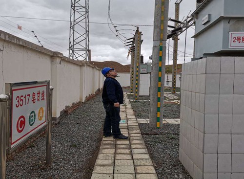 中國電力網(wǎng)訊 5月6日下午,國網(wǎng)甘肅肅南縣供電公司變電運檢班班長王攀剛正一瘸一拐忍著疼痛對轄區(qū)內(nèi)35kV皂礬溝變電站進(jìn)行細(xì)致全面的檢查。
