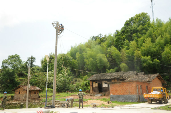 國網(wǎng)撫州廣昌縣供電公司赤水供電所工作人員劉方廣、劉方明、饒建平等人在接到楊溪鄉(xiāng)江背村用戶反映多戶無電的情況后,立即趕赴現(xiàn)場查找故障原因。直至5月16日凌晨3時左右,該供電所工作人員巡視完故障線路統(tǒng)計出結(jié)果:本次強風(fēng)共造成10千伏楊溪線江背支線88號至89號桿斷線,10千伏楊溪線江背支線江背臺區(qū)0.4千伏江背1號線18號、19號桿倒桿斷線,同時,吹散表箱3只,下戶電纜3處。