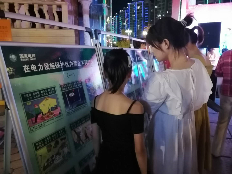 為進(jìn)一步營造社會公眾共同關(guān)注安全用電、依法用電的氛圍,該公司結(jié)合國安夜市當(dāng)晚文藝匯演人員多聚集的優(yōu)勢, 適時舉辦安全生產(chǎn)月“安全宣傳咨詢?nèi)?rdquo;活動,在夜市舞臺區(qū)“擺攤設(shè)點” ,為群眾帶來“面對面、零距離”的安全用電宣傳,全面掀起“安全生產(chǎn)月”安全用電宣傳熱潮。活動現(xiàn)場,該公司開設(shè)了家庭用電咨詢、安全用電咨詢等多個服務(wù)性咨詢臺,對群眾用電問題一一詳細(xì)做答;工作人員熱情地向來往行人發(fā)放安全用電宣傳畫冊、電力設(shè)施保護(hù)案例啟示等宣傳資料,主動向群眾講解安全用電、觸電急救等知識;陳列了電力設(shè)施保護(hù)宣傳等展板,并結(jié)合展板上的漫畫圖片向群眾宣傳電力設(shè)施保護(hù)知識,倡導(dǎo)大家積極參與電力設(shè)施保護(hù)工作,共同維護(hù)電網(wǎng)安全;同時結(jié)合迎峰度夏工作,宣傳避峰用電、節(jié)約用電,引導(dǎo)大家樹立良好的用電習(xí)慣。