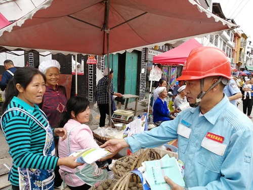 圖為謝壩供電所在市坪鄉(xiāng)街上開展安全用電、節(jié)約用電宣傳活動(dòng)