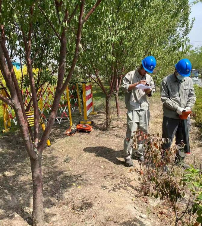 分局了解相關情況后,立即組織配電檢修試驗班人員攜帶儀器前往現(xiàn)場。經(jīng)現(xiàn)場勘察了解,該校區(qū)擴建區(qū)域涉及原居民用房及垃圾場所在地,位于小區(qū)、商業(yè)樓和沙河一小北區(qū)中間地帶,用戶較多,地下線路比較復雜,且部分電纜位于擴建項目未拆除墻體內(nèi)側,為保障電纜在施工過程中不受外力破壞、確保周圍用戶用電不被影響,工作人員在征得用戶同意后,對內(nèi)外側整段電纜進行了探測。工作人員熟練調(diào)試儀器參數(shù),沿著電纜起點逐步探測,耐心排除干擾信號,確保精準判斷電纜走向。頭頂夏日灼熱陽光,在兩個小時的緊張工作后,終于確定了該區(qū)域所有電纜路徑及埋深,此時已過了中午。該小學擴建項目負責人向分局工作人表達了感謝:“這么大熱天,真是辛苦你們了,要不是有你們這么專業(yè)的儀器,我們施工風險肯定會增加,工期也可能會有延誤,供電局的技術和服務真是沒的說。”