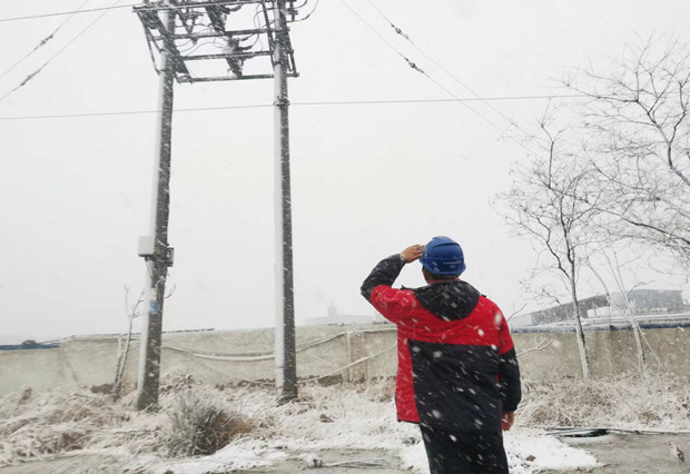 降雪期間,六五四供電公司密切跟蹤天氣變化情況,按照“雪前防護、雪中巡視、雪后檢查”原則,落實各項供電保障舉措。寒風(fēng)暴雪中,特巡人員克服暴雪路滑、車輛難行的困難,對相關(guān)線路及設(shè)備加強檢查,仔細查看導(dǎo)線、絕緣子、桿塔基礎(chǔ)以及避雷器、斷路器、隔離開關(guān)等設(shè)備積雪覆冰情況。該公司針對暴風(fēng)雪來臨后可能出現(xiàn)負荷激增,對設(shè)備接頭、導(dǎo)線連接處等重要部位開展紅外測溫,同時加強負荷監(jiān)測,全面掌握線路運行情況,確保本次雨雪冰凍天氣下設(shè)備運行正常,保障用戶安全穩(wěn)定用電。