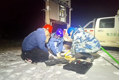 故障就是命令,搶修刻不容緩。接到報修電話后,公臘供電所工作人員立即向該所負(fù)責(zé)人匯報,并組織值班搶修人員佩戴好口罩迅速集結(jié),第一時間奔赴現(xiàn)場。經(jīng)排查發(fā)現(xiàn),故障原因為916公臘線向陽村變壓器由于冬季用電負(fù)荷過大,造成JP柜內(nèi)空氣開關(guān)過負(fù)荷燒毀。確定故障后,搶修人員迅速制訂搶修方案,準(zhǔn)備材料、安全工器具并做好各項安全措施后,立即展開搶修工作。由于夜晚能見度較低,搶修人員每進(jìn)行一步都得小心翼翼,大家通力合作,經(jīng)過兩個多小時的全力搶修全村恢復(fù)供電。隨著合閘送電順利進(jìn)行,搶修人員也同時松了一口氣。