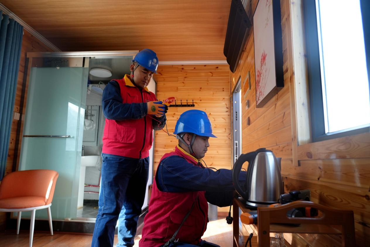 供電公司工作人員在天山托木爾景區(qū)·塔村民宿內開展電力安全檢查工作 (趙新昌 攝)