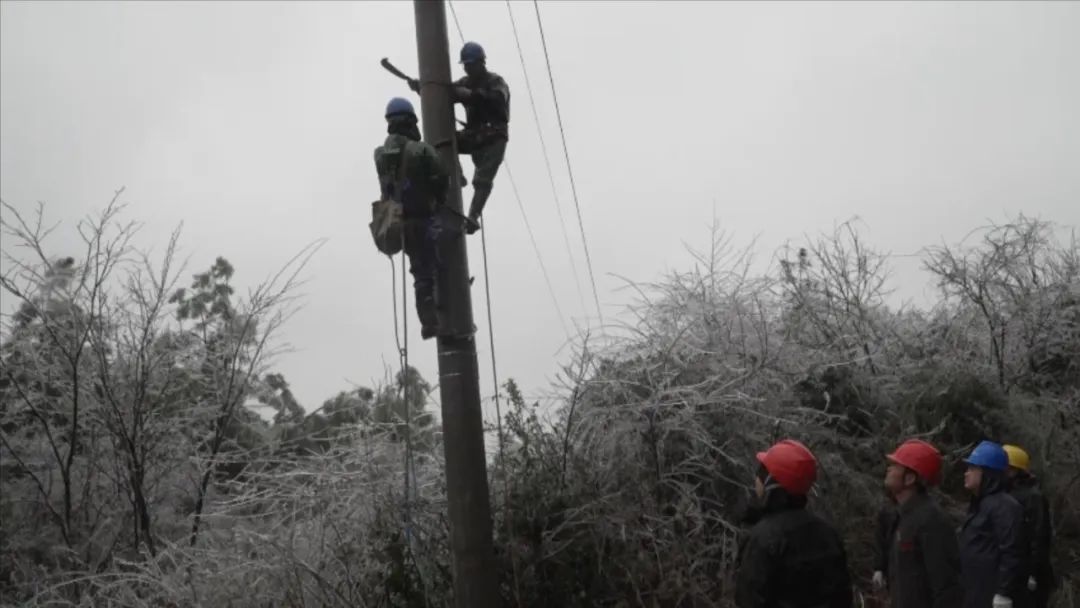 “因下凍雨的原因,這個變電桿覆冰好厲害,現(xiàn)在要把這個電桿冰除掉,才能夠上桿作業(yè),我們就采取土辦法,用刀刮,因?yàn)橐巴馍涣嘶?,沒有其他設(shè)備,把這個冰刮了以后,再進(jìn)行人工作業(yè),電桿打滑打得好厲害。”國網(wǎng)鄱陽縣供電公司游城供電所負(fù)責(zé)人謝雪兵說道。