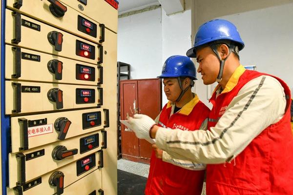 國網(wǎng)重慶江津供電公司青年志愿者對學(xué)校配電房進行特巡。王化全攝