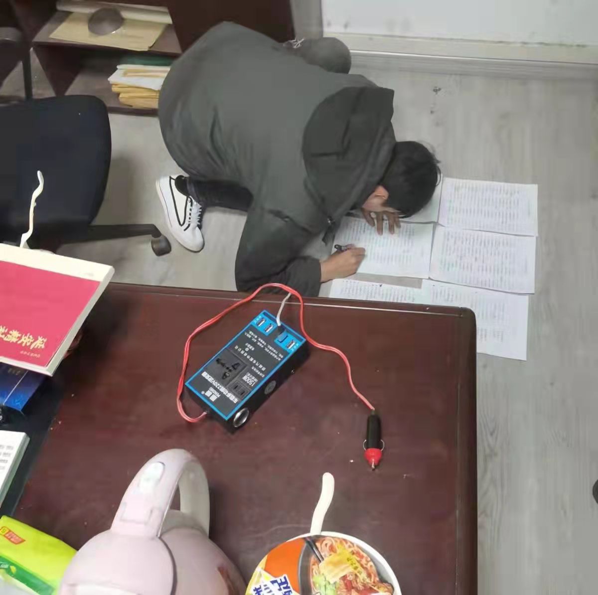 寒潮來(lái)襲,城區(qū)家用負(fù)荷急劇上升,用戶(hù)開(kāi)關(guān)故障跳閘不時(shí)發(fā)生,春節(jié)保電任務(wù)異常艱巨。工作人員的手機(jī)一直響個(gè)不停,足足6頁(yè)的接警記錄,桌子上放不下,只能趴在地上寫(xiě),搶修的工作人員不是在搶修現(xiàn)場(chǎng),就是在奔赴下一個(gè)搶修現(xiàn)場(chǎng)的路上。