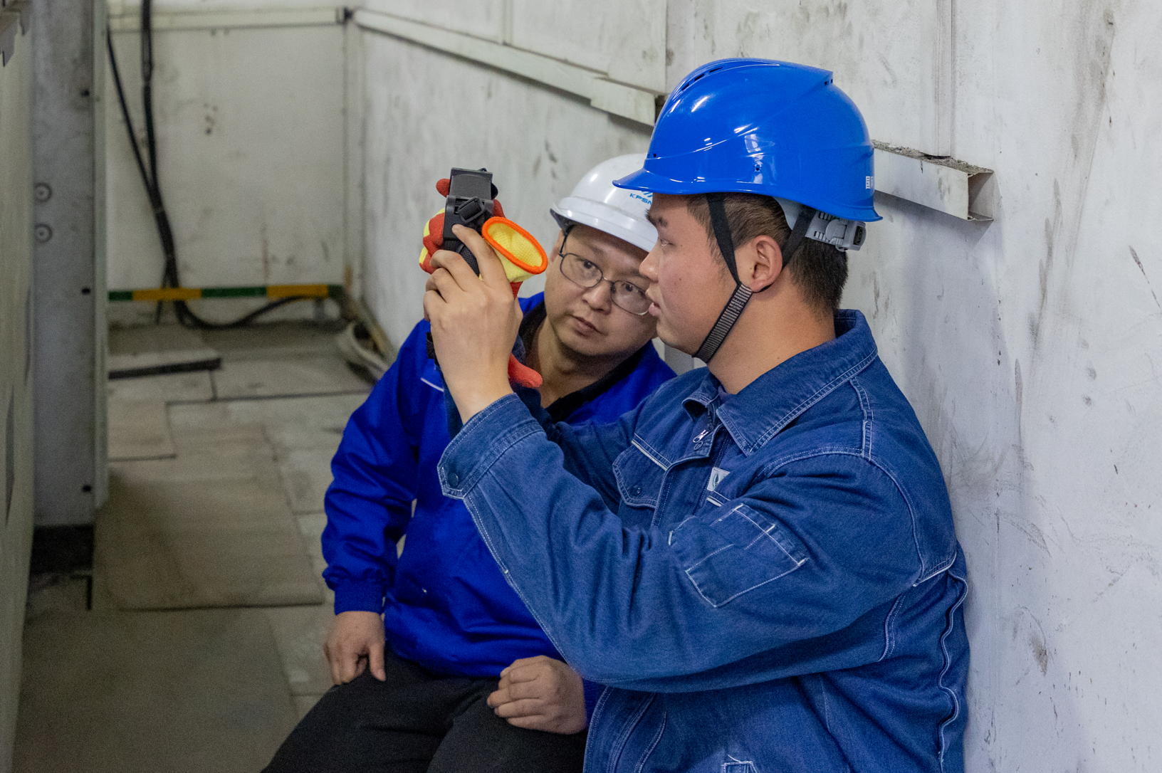 “變壓器高壓側(cè)A相樁頭19攝氏度……溫度正常,運(yùn)行狀態(tài)無異常。”程韋手持測(cè)溫儀檢測(cè)用戶10千伏變壓器樁頭溫度,查看變壓器油位、油溫,確定檢測(cè)值均在設(shè)備運(yùn)行的正常范圍內(nèi)。隨后,利用聲紋相機(jī)逐一檢查每臺(tái)高壓柜的局放值,并透過觀察窗檢查進(jìn)出線電纜情況,確保每相電纜都運(yùn)行正常。